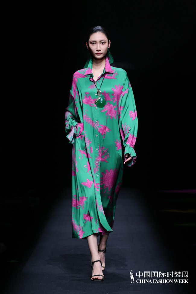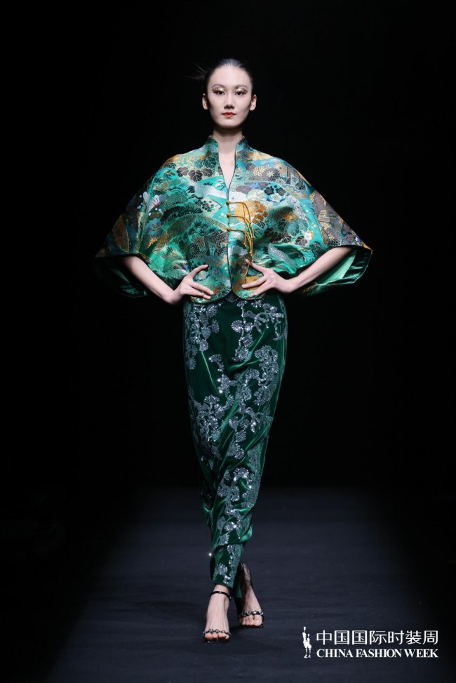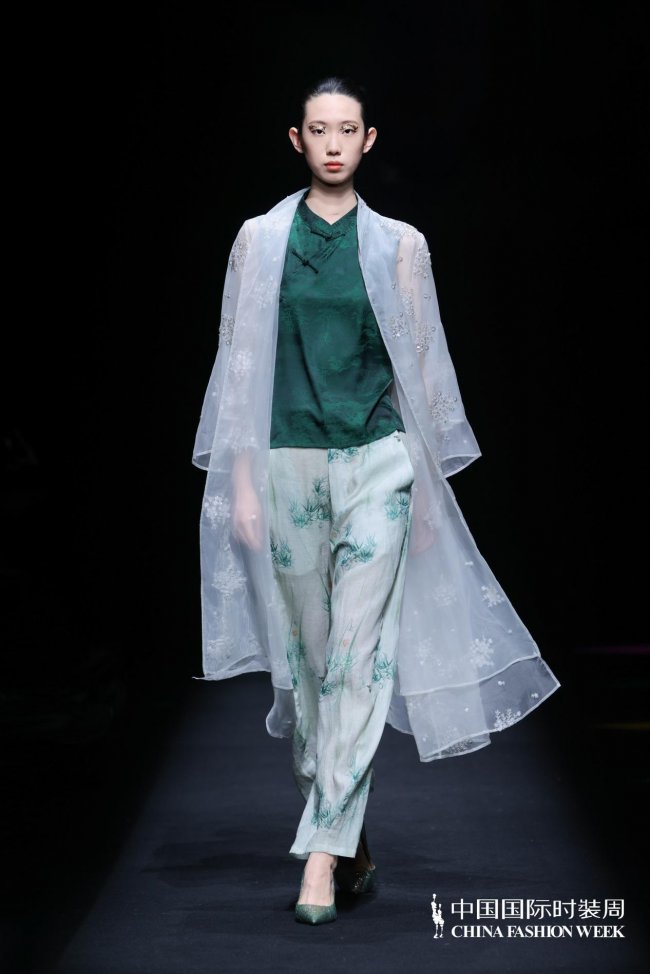 以松弛舒展的廓形为基底,立领、对襟、长衫、披衫叠搭与阔腿裤等单品,构筑出兼具东方风骨与现代舒适的着装体系。刺绣、提花、晕染等传统工艺含蓄点缀于领口、门襟、袖口与衣摆,层次内敛,东方余韵自然融入日常。色彩上,豆绿、松绿、石青、柔粉清雅温润,茄紫、墨褐沉稳点睛,于克制配色中尽显东方色彩的丰盈底蕴,为新中式国风穿搭赋予极具东方意趣的当代表达。